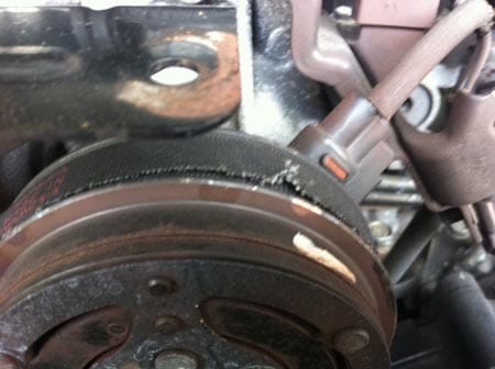 今日エアコンベルトを取り付ける際にテンショナーの軸受け部にクラック(ヒビ発見・・)。