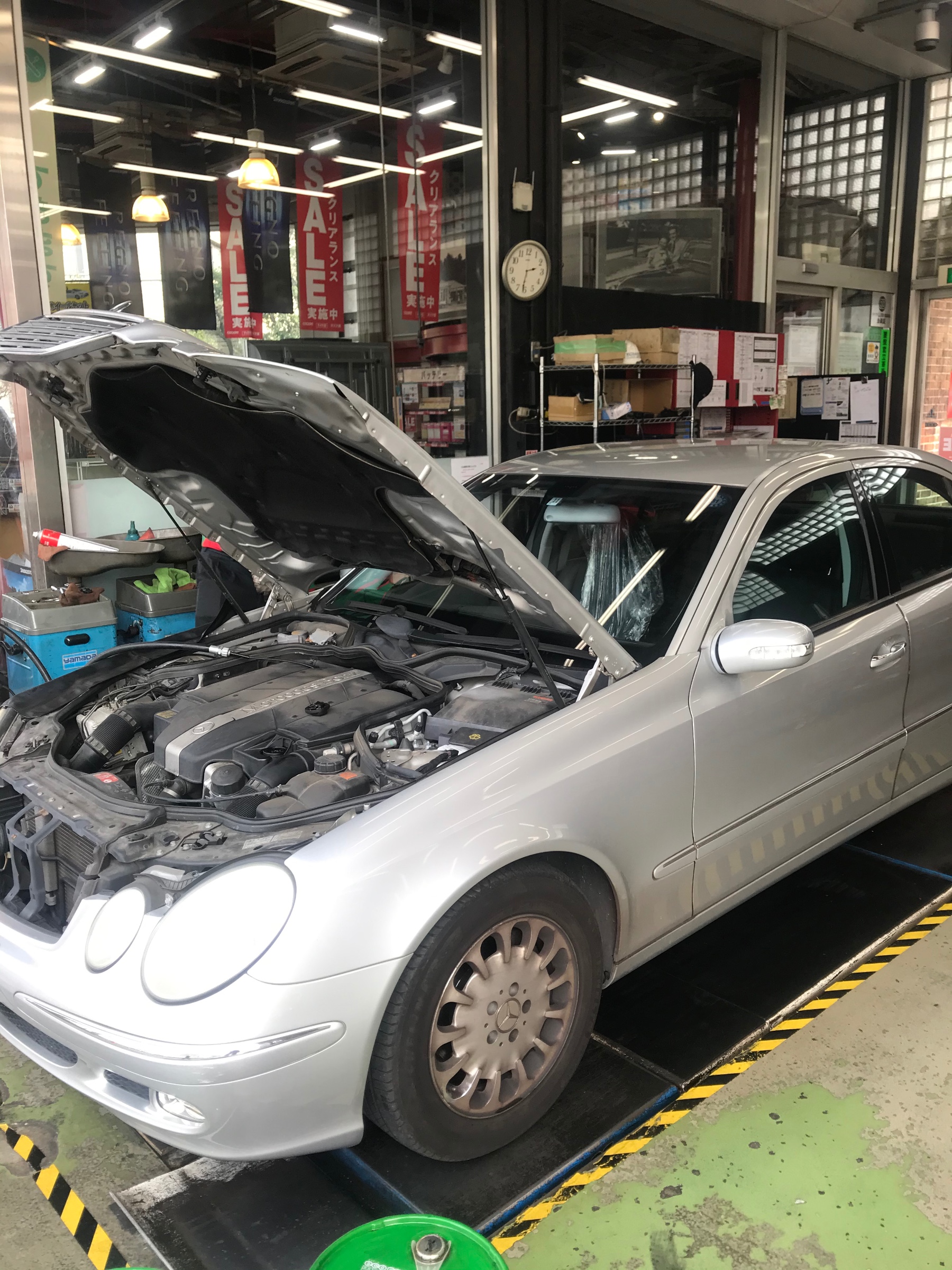 今回は、メルセデスベンツEクラスのエンジンオイル交換です。