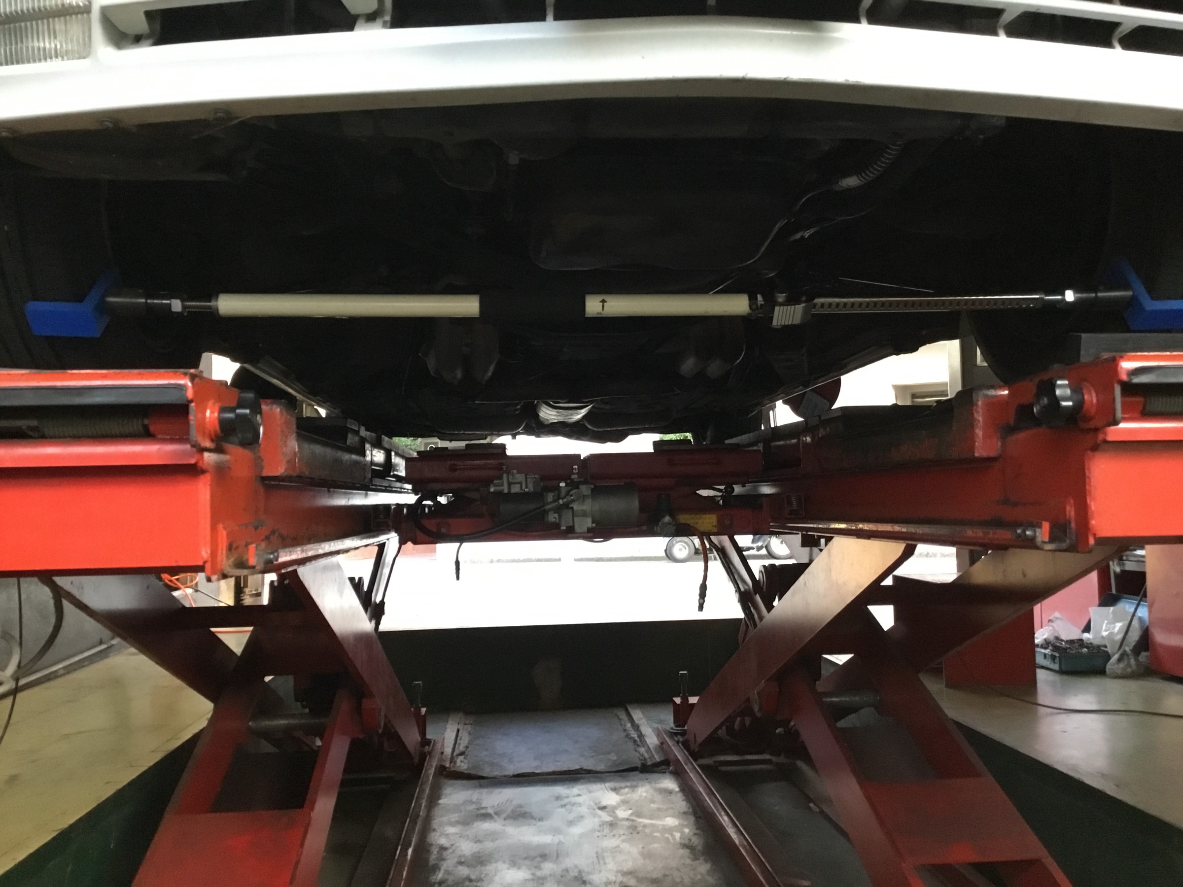 この突っ張り棒、一応メルセデスのアライメント用SSTなんですが、結構お役立ち工具で、メーカー関係なく使えて重宝しています。