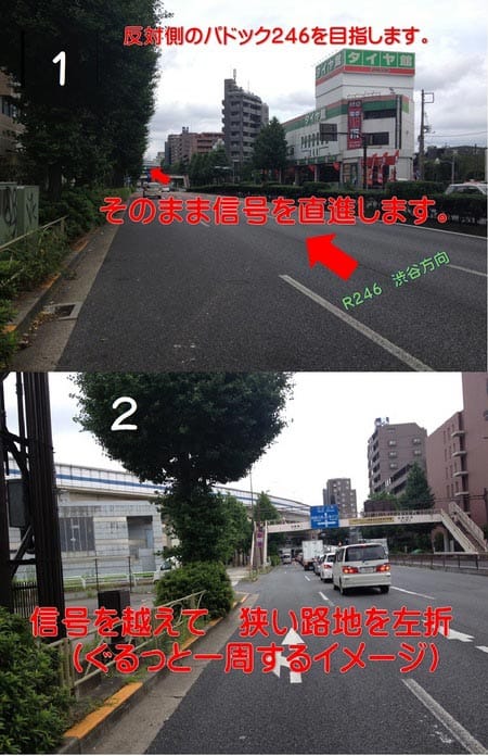 国道246号線上り車線(環8 川崎方面)からお越しのお客様へ
