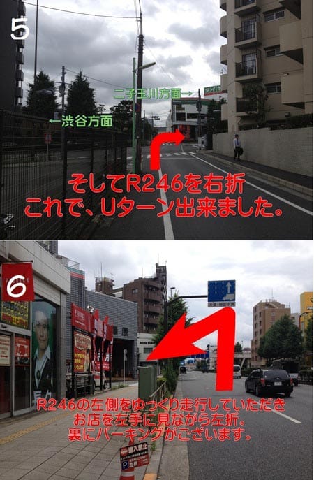 (6)左手に店舗が見えてきますので、店舗の先の〝路地〟を〝鋭角にUターン〟