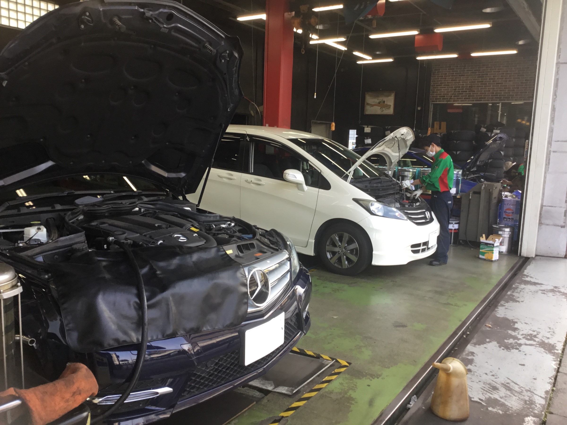 画像1:オイル交換や履き替えが進みます。