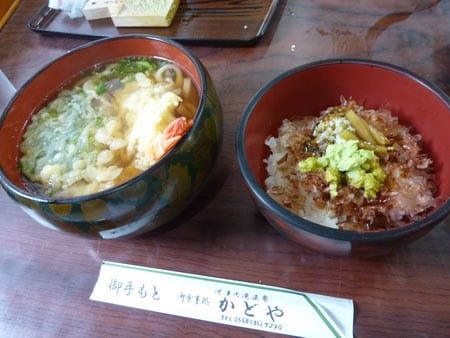 写真2・・・噂のわさび丼とてんぷらうどんをチョイス。
