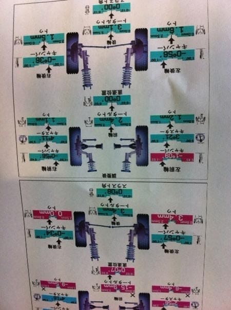 大きく開いていたトーも基準値までもってきたことで、(調整後)試乗チェックでもなんとかOKレベルまで改善できました。