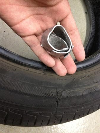 高速走行中にこの金属の板を踏んでタイヤの内部まで入り込んでしまって、