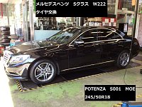 こんにちは。 世田谷区等々力よりお越しの、メルセデスSクラス(W222)をご紹介します。 タイヤは、メルセデスベンツ承認タイヤMOEマーク付き、ポテンザS001ランフラットをお選びいただきました。 タイヤのサイズは、245/50R18です。 ご来店頂きありがとうございました。
