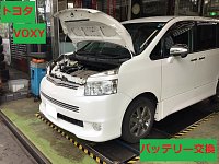 トヨタ VOXYのバッテリー交換のご紹介です。 突然のバッテリー上がりによりJAFさんの救援を呼ばれて、何とかエンジンをかけてもらってご入庫いただきました。 国産車のバッテリーはアイドリングストップ付き車用も、そうでない一般的なタイプも常時在庫しております。 困ったことになる前に定期的な...