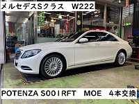 メルセデスベンツの承認タイヤであるPOTENZA S001 MOEにて交換です。 MO→メルセデス純正承認 E→Extended そんな純正タイヤも当店ではご用意しており即日の交換です。 重量のあるクラスですのでしっかりと純正承認タイヤで仕上げさせて頂きました。