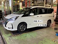 こんにちは♪ 今回の作業はセレナの新品タイヤ交換です♪ ご来店ありがとうございました。