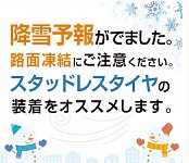 2023年初の降雪予報が出ております。 気温も低く路面凍結の可能性もありますので、スタッドレスタイヤの装着をお勧めいたします。