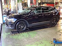 ども!! OK-Pです!! 本日の作業紹介はこちら('ω')ノ VW ティグアンにスタッドレスセットを取付けました(*´ω`*) ホイールは純正センターキャップが取り付け可能なユーロプレミアム、スタッドレスタイヤはSUV専用設計のDM-V3を取付しました(*^_^*) 黒のボディーとガンメタのホイールなので違和感...