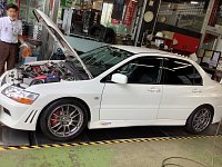 定期的にメンテナンスでご利用頂いているランエボのオイル交換です。 外装はシックにまとめられておりますが・・・。 ピンボケしてますが(苦笑)、エンジンルームは本格的です。 羊の皮を被った狼的な感じでしょうか。 この手の車は非常に高騰しています。 このまま大事にされてほしいものですね。...