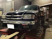 ども!! OK-Pです!! 本日2回目の作業紹介はこちら('ω')ノ ローダウンされたトヨタ ハイラックスのアライメント調整です!! 調整箇所は前トー・キャンバー・キャスター。トーとキャスターは下から調整が出来ますが、キャンバーはボンネットを開けてアッパーアームの付け根にシムを入れて調整す...