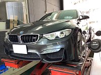 ども!! OK-Pです!! 本日2回目の作業紹介はこちら('ω')ノ BMW F80 M3のアライメント調整です! 調整箇所は前トー、後トー・キャンバーとベースとなったF30と同じですが、後の調整機構は全く違います。F30では調整をアームのサブフレーム側で行いますが、このF80では調整をナックル側で行います...