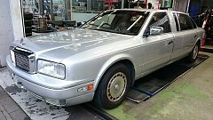 プレジデントの入庫です。 よ~く見ると長いです(笑) めちゃくちゃレアなロイヤルリムジンです。 ノーマルよりもかなり延長され、後部座席の前に人が座れます(笑) タイヤはレグノ GR-XIIを装着! ボディが長すぎてリフトに乗らず、ジャッキで作業する事に(笑) 作業終了♪ めちゃくちゃはみ出てます(笑)