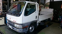 今日はキャンターのタイヤ交換です。 常時在庫として置いてはおりませんが、ご注文により作業可能です。 働くクルマにもメンテナンスを!