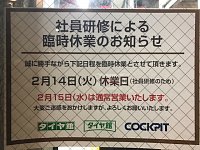 明日、2月14日火曜日は 社内研修の為お休みさせていただきます。 全国のタイヤ館スタッフを集めての研修になるのですが、全国的には火曜定休が多いようで、水曜定休なのが関東だけらしく、関東の店舗では定休日外のお休みになります。 14日にご来店を予定されていたお客様には大変申し訳ございませ...