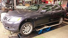 某有名自動車情報誌の取材で、ボルボの広報車両に新商品「アレンザ」を組み付けました。 当店はブリヂストンのアンテナショップとしてこのような仕事もさせて頂いております。