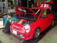 FIAT アバルト500のフェラーリバージョン(本物) トリビュートフェラーリのオイル交換中に大久保さんが、 エンジンルームに腕を突っ込んだまま、遠くを見て黄昏ていました。 何してんのかな?って近寄ってみると、オイルエレメントの交換作業中でした。。。 アバルト500のオイルエレメントは、 画像2...