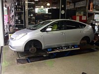 本日もタイヤ交換作業で賑わっております、ありがとうございます。 こちらは以前タイヤのお見積もりをされ、ご予約頂いておりましたプリウスです。 REGNO GRーXIを装着してアライメント作業も実施致しました。