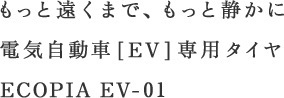 同じ電気の量でもより遠くまで走れること。 道路との接地によって生まれるノイズを抑え、静けさを保つこと。 エコピアの高い環境性能を受け継ぎながら、電気自動車のタイヤに求められる性能を追求したタイヤ、ECOPIA EV-01。 いよいよ、ブリヂストンから登場です。