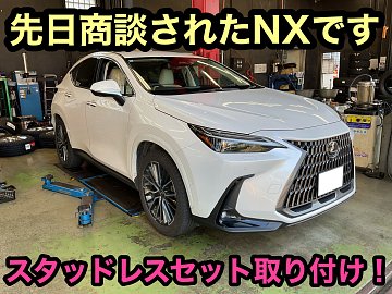 先日スタッドレスセットの商談でご成約を頂いておりましたNXの作業です。 レクサス純正ボルト対応ホイール、レフィナーダとブリザックDM-V3のセットになります。 純正ホイールに装着されているTPMSセンサー信号を予め読み込んだ後、 汎用のセンサーに読み込ませて組み込んでおります。 これにより夏...