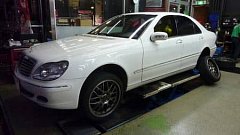 こちら W220 メルセデスベンツ Sクラス リアタイヤの交換です。 POTENZA S001 275/35R19 内側が偏摩耗状態、、 どうしても、この様になってしまうのですよね。 ですが、アライメント調整で改善出来ます。