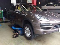カイエン入庫。 パンクです。。 パドックではパンク修理は当然ですが、修理前のタイヤの内部損傷点検等「任せて安心」ですッ!!