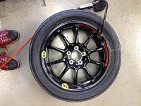 こんにちは。 これ、スペアタイヤなのですが、 空気を抜くと小さくまとまるんですよ。 バルブのコア(ムシ)を抜くとプシューーーと みるみるタイヤが収縮して、サイドウォールが折れ曲がって畳まれてしまいます。 とにかく「畳まれる」という表現が一番いい表現方法ってくらい、 綺麗に収まってい...