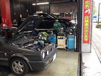 今日のピット風景。 私が入社した頃によく見かけた風景です。 手前に フォルクスワーゲン GOLFⅡ 奥に R32 GT-R ジャンルは違えど、時代を飾った名車たちが並んだ瞬間でした。