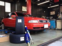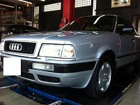 とってもきれいなアウディ80入庫。 なんと本日四国からもどられたとのこと・・・ FFなのにエンジン縦積み。。5気筒直列。。。エンジンマウント位置がかなり前のめりッ。。 と当時のエンジニアの思惑・こだわりとその特殊なレイアウトからくる非効率的な部分に興味深々でしばし観察・・・ さっき少し...