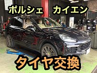 以前当店にてフロントタイヤを交換されたカイエンです。 今回はリアタイヤの交換ですが、溝も無ければひび割れも起こしており危ない所でした。 アレンザ001、中々巨大なサイズです。 平行してオイル交換作業も承りました。 オイルのみでしたので、上抜きチェンジャーにて迅速に作業させて頂きました...