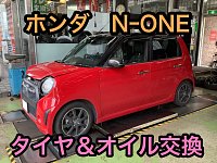 十数年当店をご利用されている上、 毎度大磯からわざわざお越し頂いているN-ONEです、ありがとうございます。 今回はスタッドレスタイヤから夏タイヤへの履き替えに際し、新品に交換して頂きました。 タイヤは前回同様、ポテンザ アドレナリン RE004になります。 タイヤ交換作業と同時にオイル...
