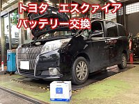 本日は世田谷区新町よりお越しのトヨタ エスクァイアの作業です。 車検を控え、事前点検で弱っていたバッテリー交換と有効期限切れの発煙筒交換です。 プラス端子には沢山の青い粉が噴いて付着していました。 これは緑青(ろくしょう)と言ってバッテリー内のガスが漏れだしターミナルの銅と 反応し...
