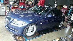 一見すると普通のBMW E90ですが・・・・ 実は本物のアルピナで、正規ディーラー二コルの限定車だそうです。 30台しかないらしく・・・(凄) 内装も洒落ています。 ホイールも専用の19インチで、ノーマル車では標準装着のランフラッタイヤではありません。 POTENZA S001を装着しました。