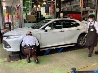 今やトヨタの主力セダンとなったカムリのタイヤ交換です。 交換するタイヤはブリヂストン、レグノGR-XIIになります。 235/45R18・・・一昔前までは希少サイズでしたが、今は装着車種が増えてきました。 装着完了です。 ご来店ありがとうございます。