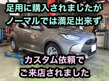 元々色々なスポーツカーを乗り継がれたそうで、 そろそろ落ち着こうとノーマルのヤリスを購入されたものの、 やはりカスタムをしたくなったとの事で当店にご要望を頂きました。 純正はベースグレード故の寂しい印象でしたが・・・。 基本中の基本、ホイールセットを交換です。 街乗りも重視されると...