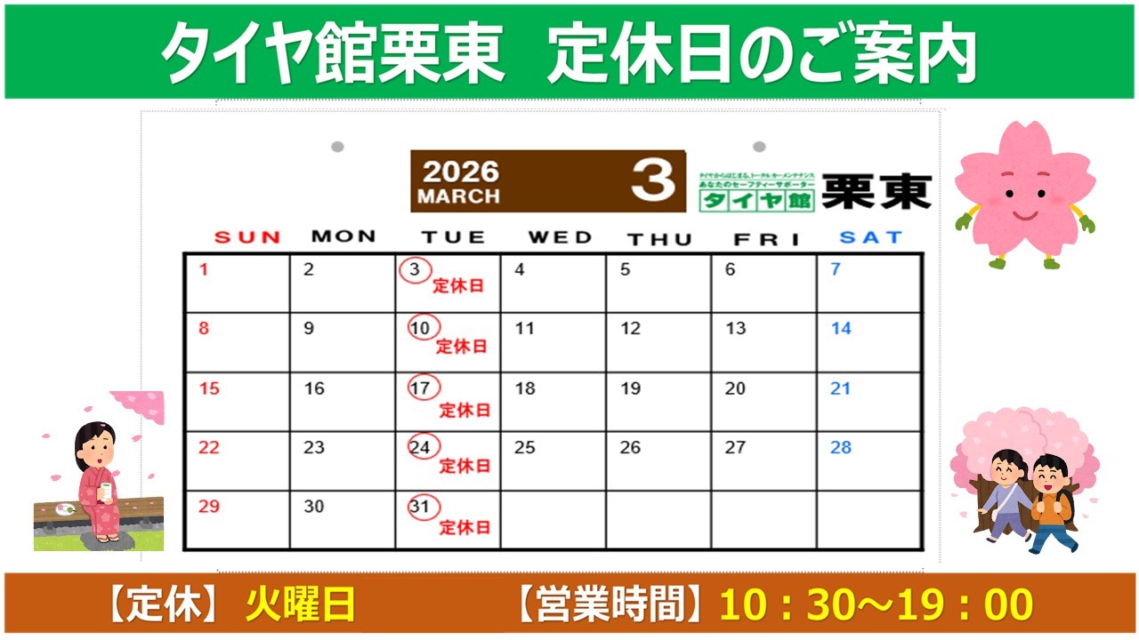 【動画有】タイヤ館栗東 3/24は定休日となりますが、WEBからタイヤ購入予約受付中♪