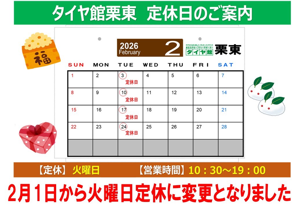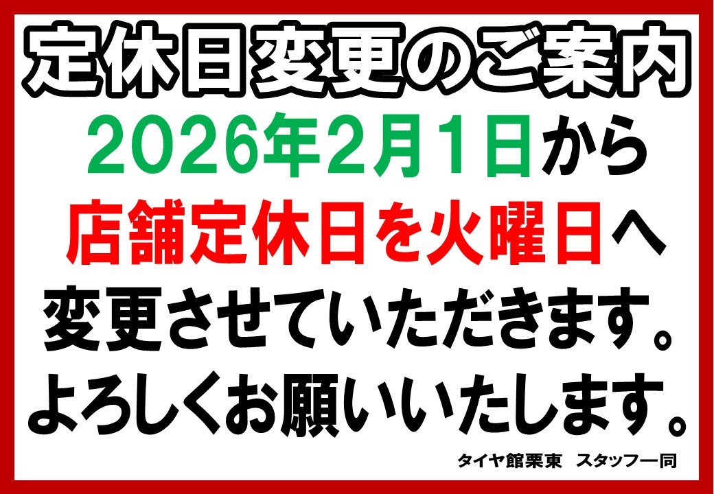 【動画有】タイヤ館栗東 2/10は定休日となりますが、WEBからタイヤ購入予約受付中♪