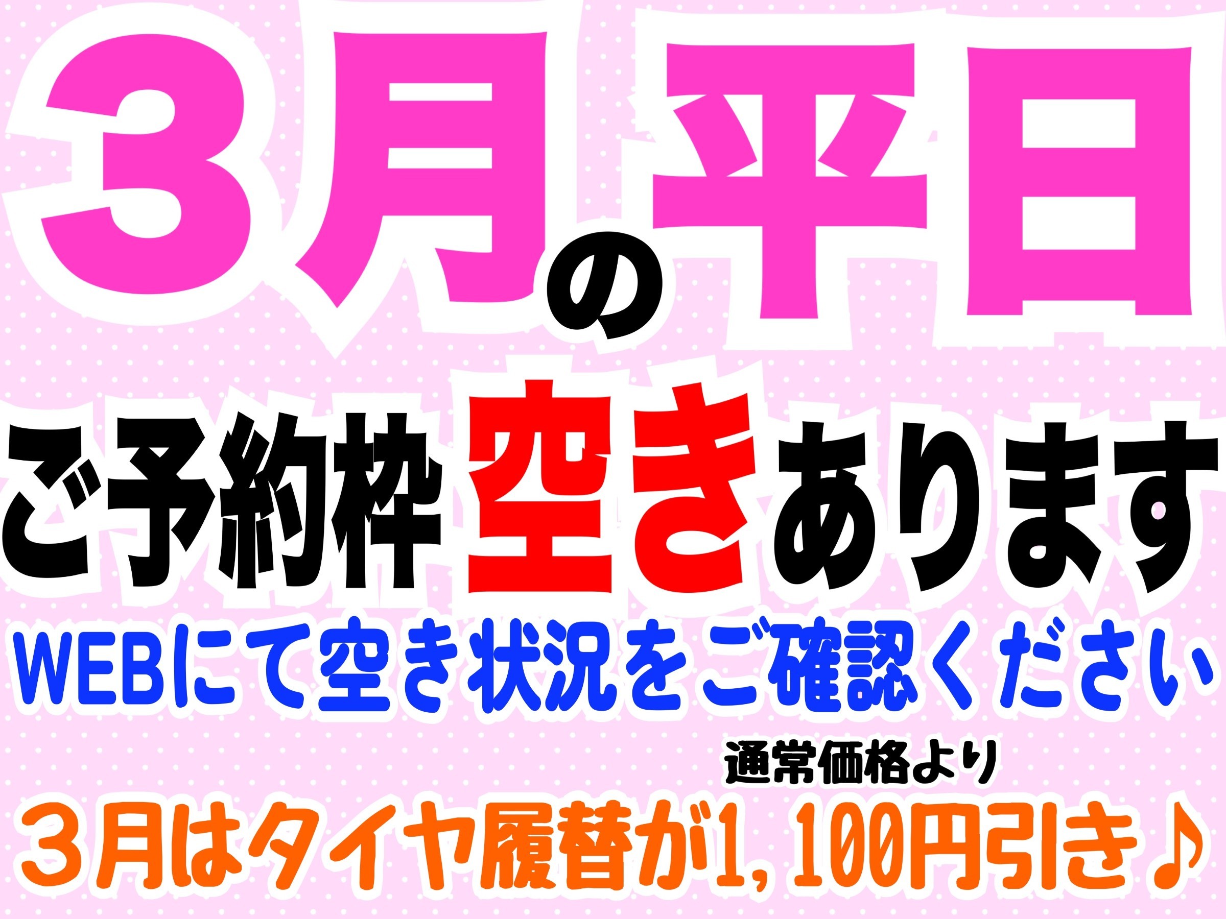 夏タイヤへの履き替えは3月中がおトクです(*^-^*)【平日空きあります(3/16時点)】