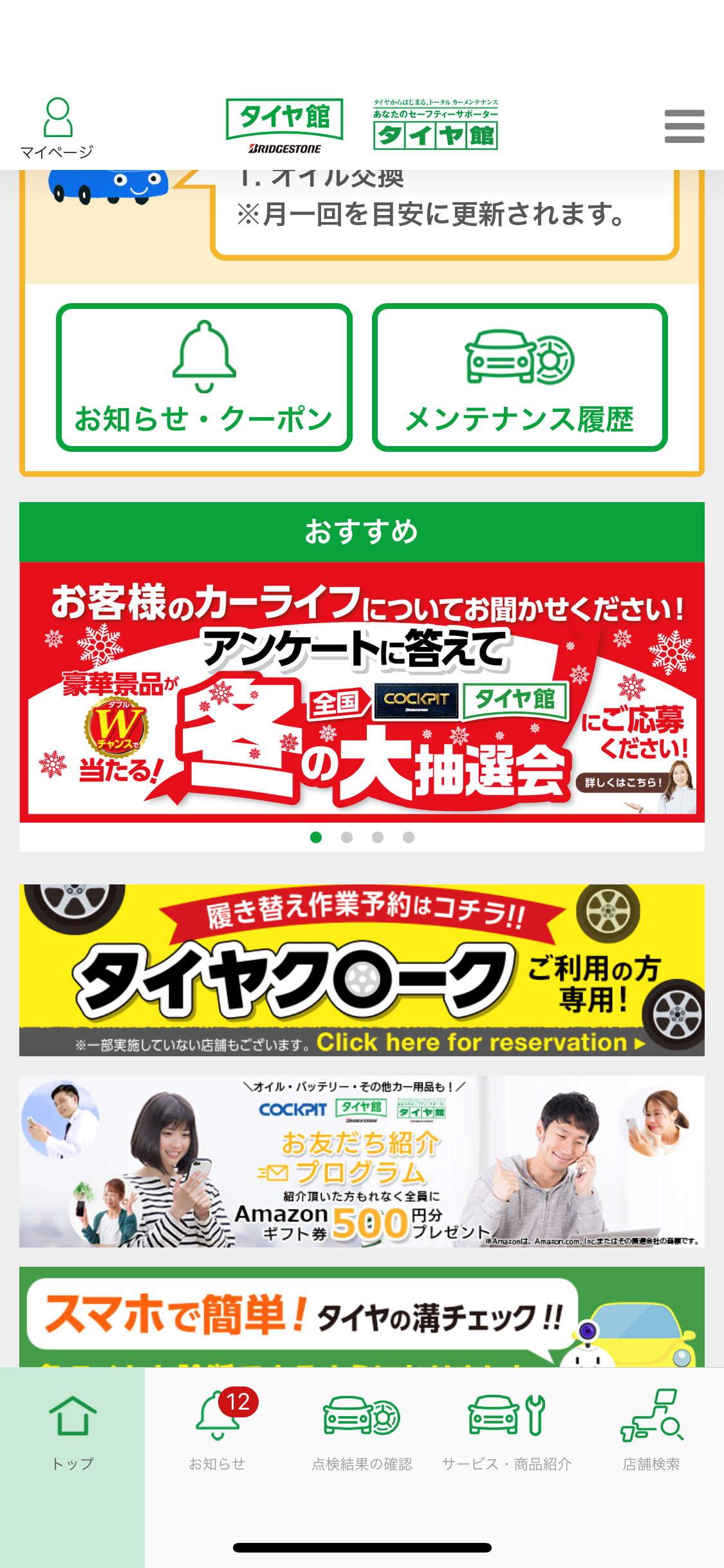 「タイヤ館アプリ」をインストールされている