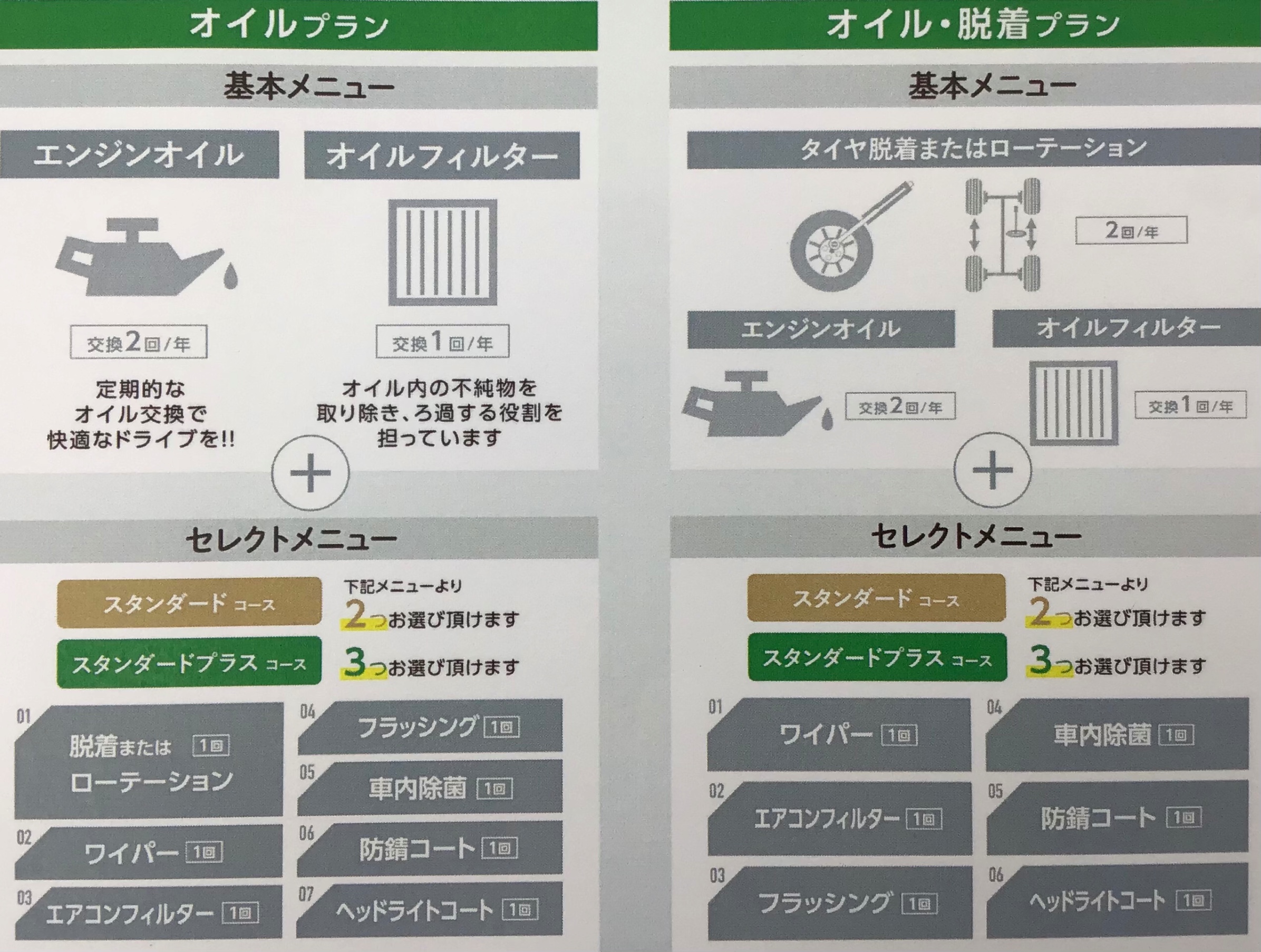 オイル交換や脱着がお得に利用できるプランです(^ ^)