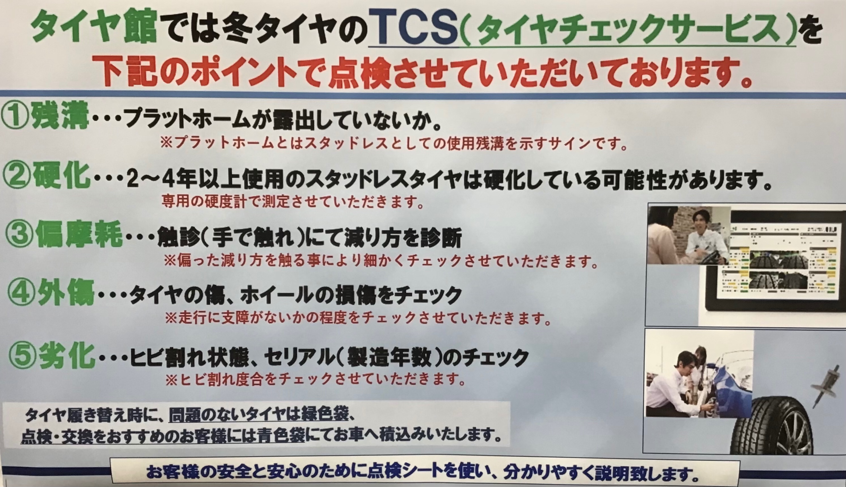 交換をおすすめのタイヤは【青】の袋に