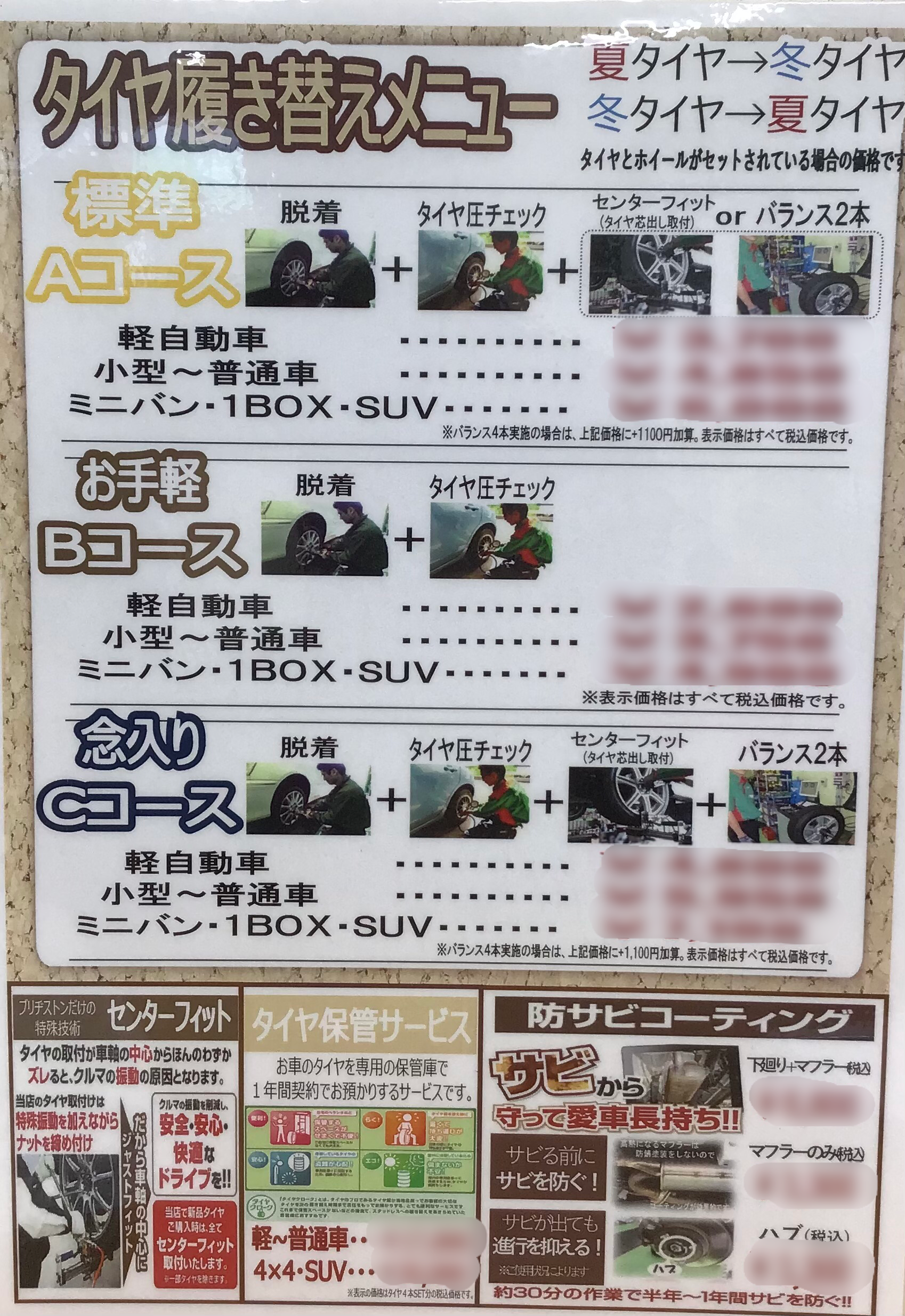 タイヤ館では脱着のコースを