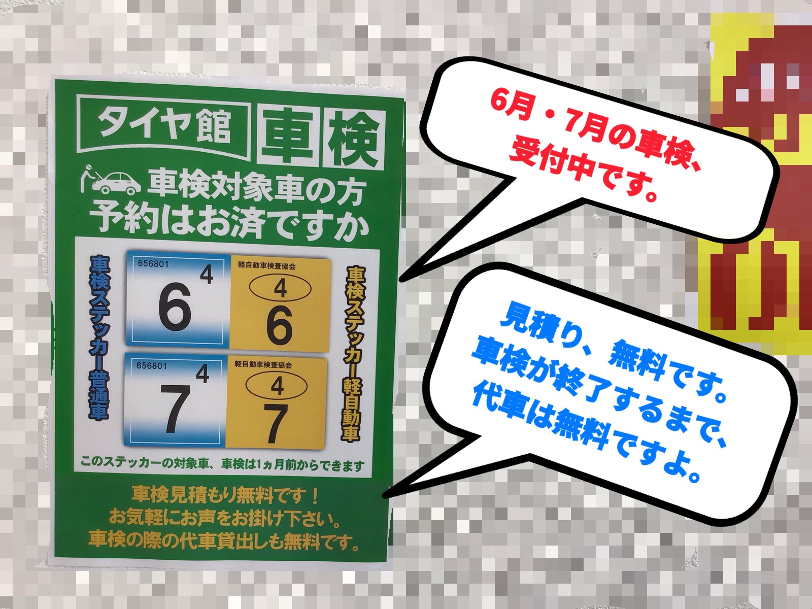 タイヤ館栗東から6月・7月の車検のご案内です。