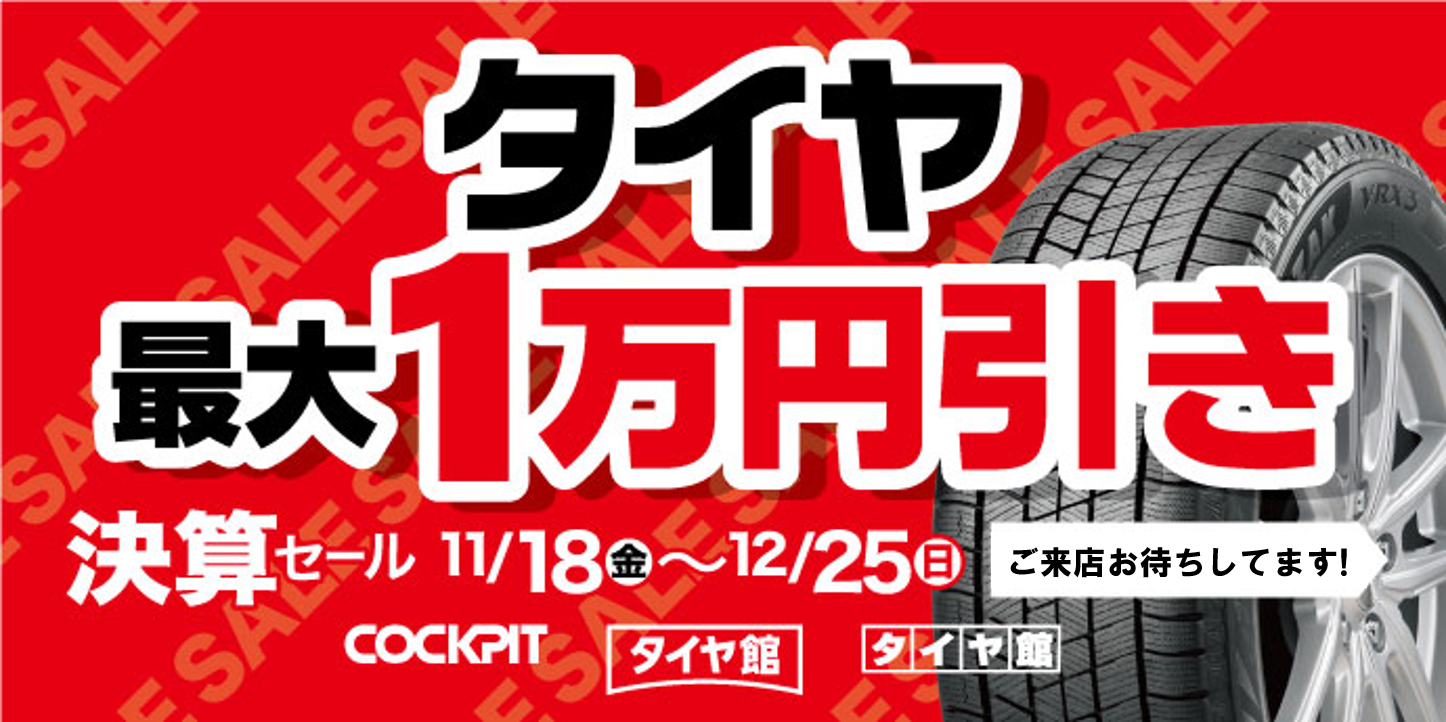 【タイヤ最大1万円引き!】決算セール開催中!!