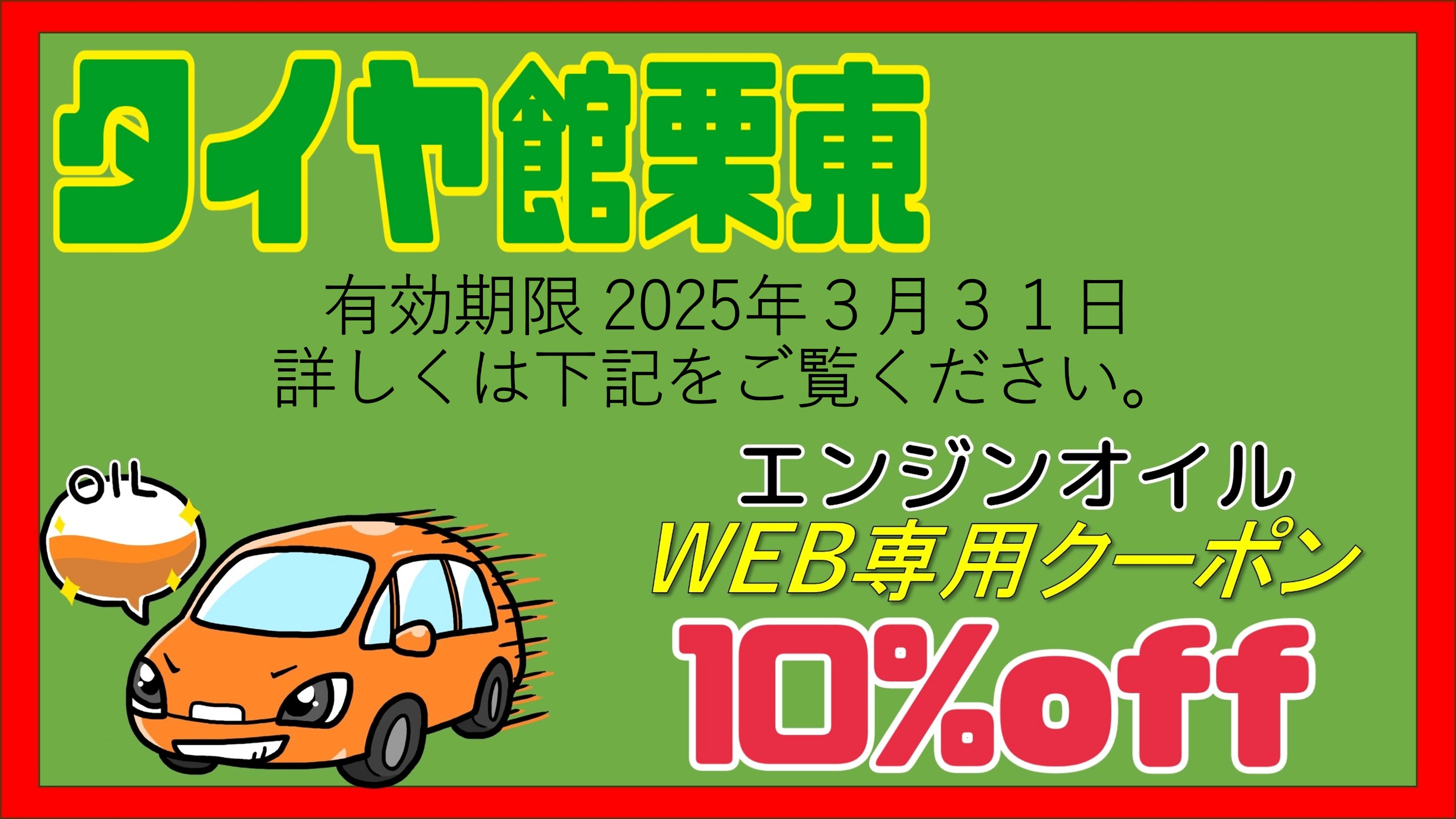 ☆クーポン券アリ☆オイル交換をするなら選べるお店へ!!タイヤ館栗東!!!
