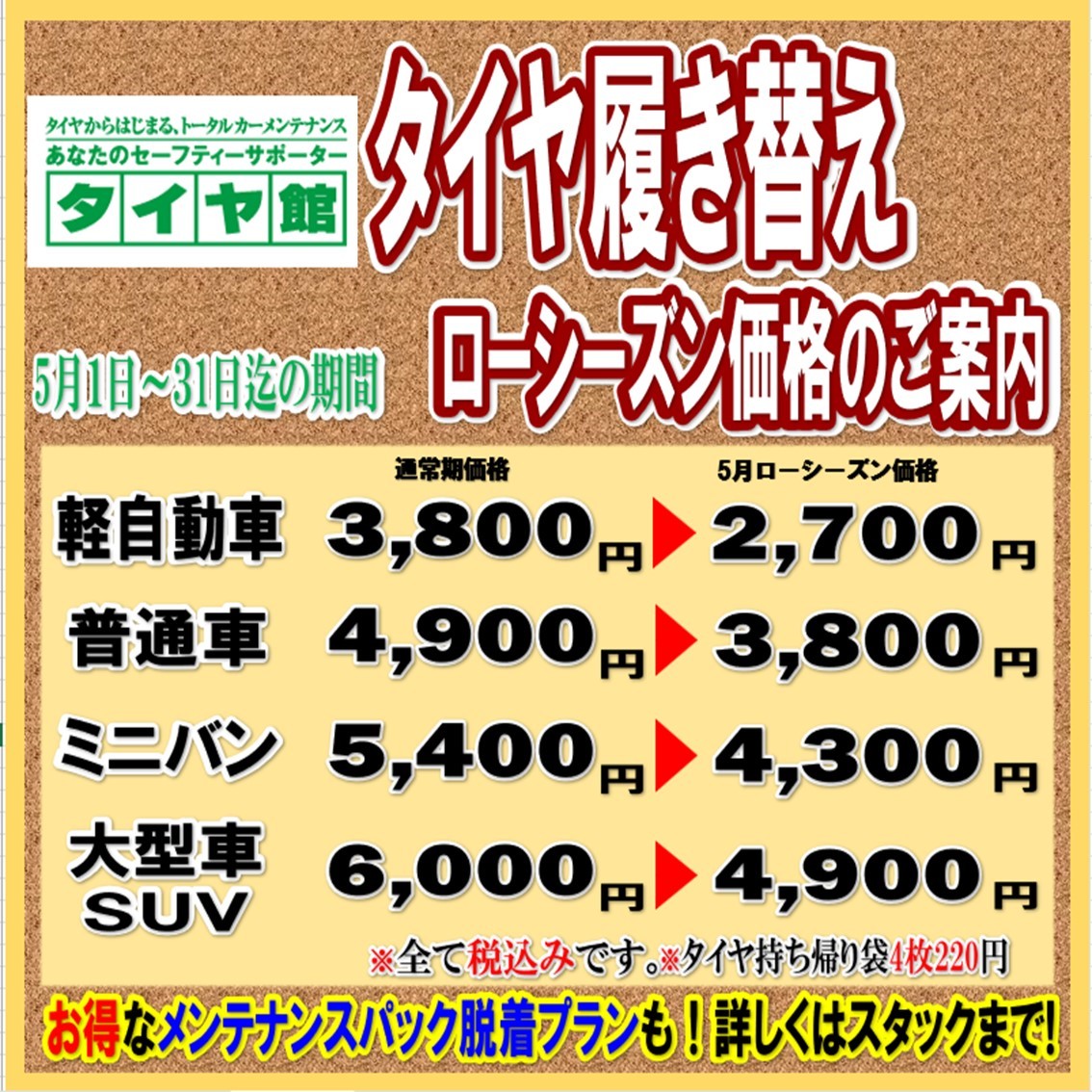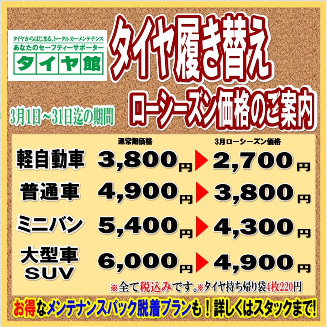 【タイヤ館栗東】春のタイヤ履き替えはローシーズンがお得!