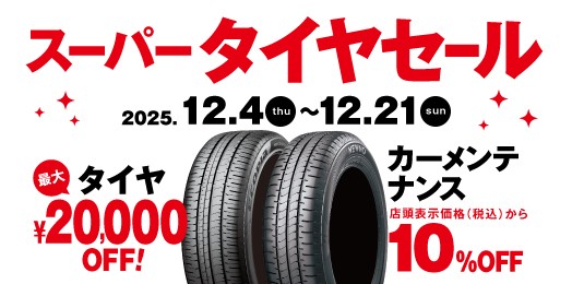 ブリヂストンのタイヤ4本ご購入で、タイヤ最大20,000円