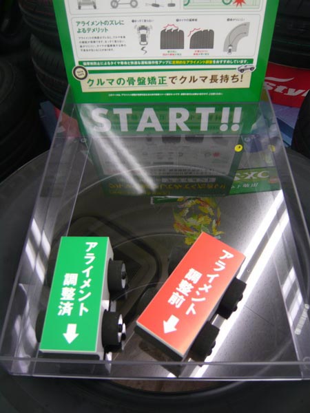 コレを使ってお客様のタイヤの取り付け角度の「イマ」をお伝えします。